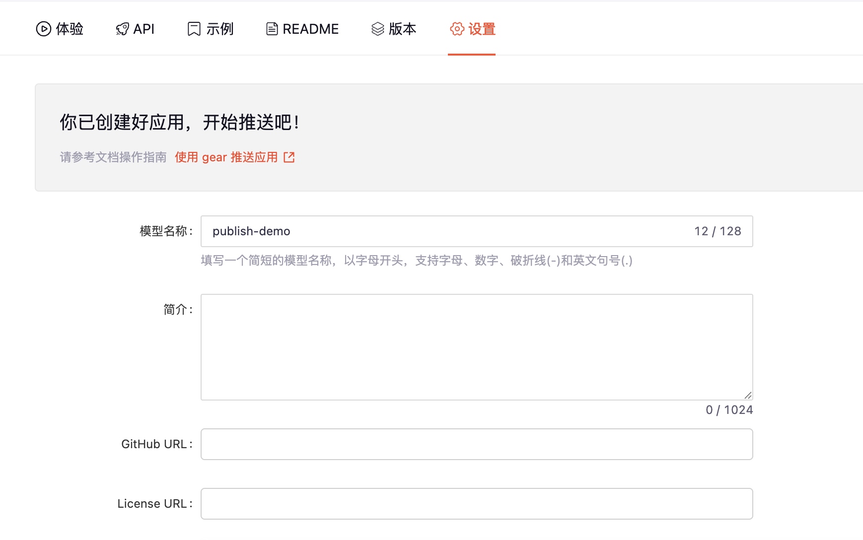 You can call the model in the experience area after it has been pushed, and add the best output results to the examples. This helps other users quickly understand the best practices and output effects of the model.